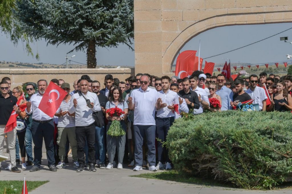 Memleket Partisi Genel Başkanı Muharrem İnce, 30 Ağustos Zafer Bayramı nedeniyle geldiği Dumlupınar’da ilk olarak şehitliği ziyaret ederek karanfil bıraktı, fatiha okudu, partili gençlerle şehitlere saygı yürüyüşü gerçekleştirdi.