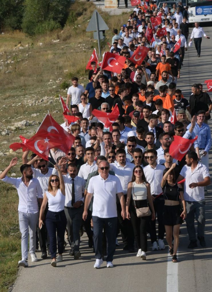 Memleket Partisi Genel Başkanı Muharrem İnce daha sonra gençlerle Dumlupınar ilçe merkezindeki İlk Hedef Anıtı’na yürüdü.