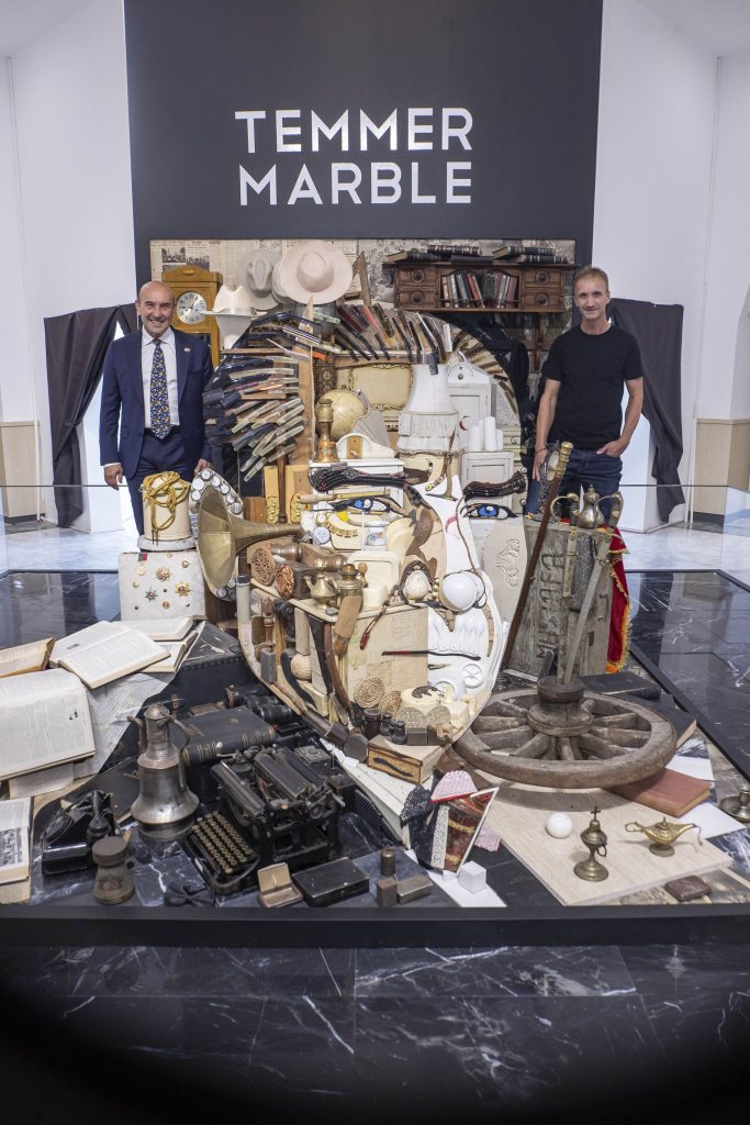 emmer Marble tarafından Çekyalı Heykeltraş Patrik Prosko’ya yaptırılan, ilk kez İzmir’de 26. Mermer Fuarı’nda ardından da İstanbul ve İtalya’da sergilenen ‘Anamorfoz Atatürk’ isimli 539 parçadan oluşan eser, 91. İzmir Enternasyonal Fuarı’nda yeniden Egeli ziyaretçilerle buluştu.