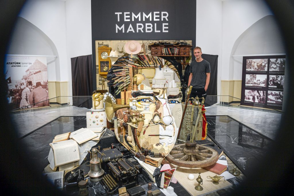 emmer Marble tarafından Çekyalı Heykeltraş Patrik Prosko’ya yaptırılan, ilk kez İzmir’de 26. Mermer Fuarı’nda ardından da İstanbul ve İtalya’da sergilenen ‘Anamorfoz Atatürk’ isimli 539 parçadan oluşan eser, 91. İzmir Enternasyonal Fuarı’nda yeniden Egeli ziyaretçilerle buluştu.