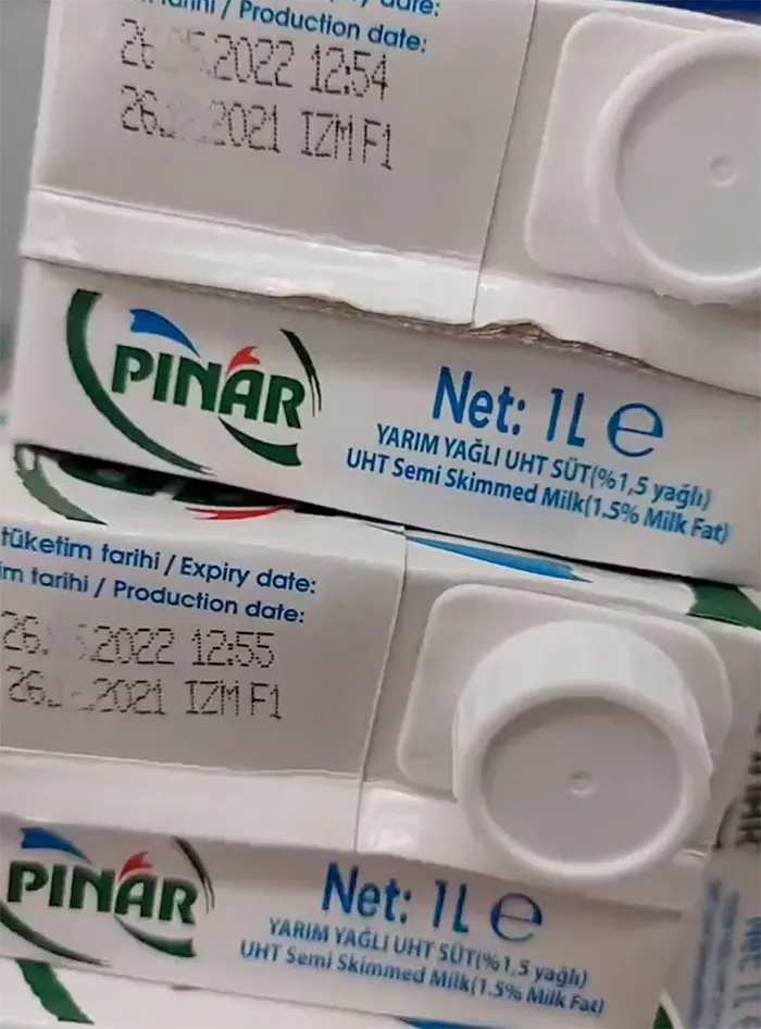 ‘Sade Vatandaş Mehmet Koyuncu’ isimli Twitter hesabından paylaşılan videoda market raflarında yer alan belli bir markaya ait sütlerin son tüketim tarihlerinin silindiğini görüldü. Son kullanma tarihi geçmemiş olan ürünlerin ise tarihlerinin ise üzerinde aynen durması dikkat çekti.