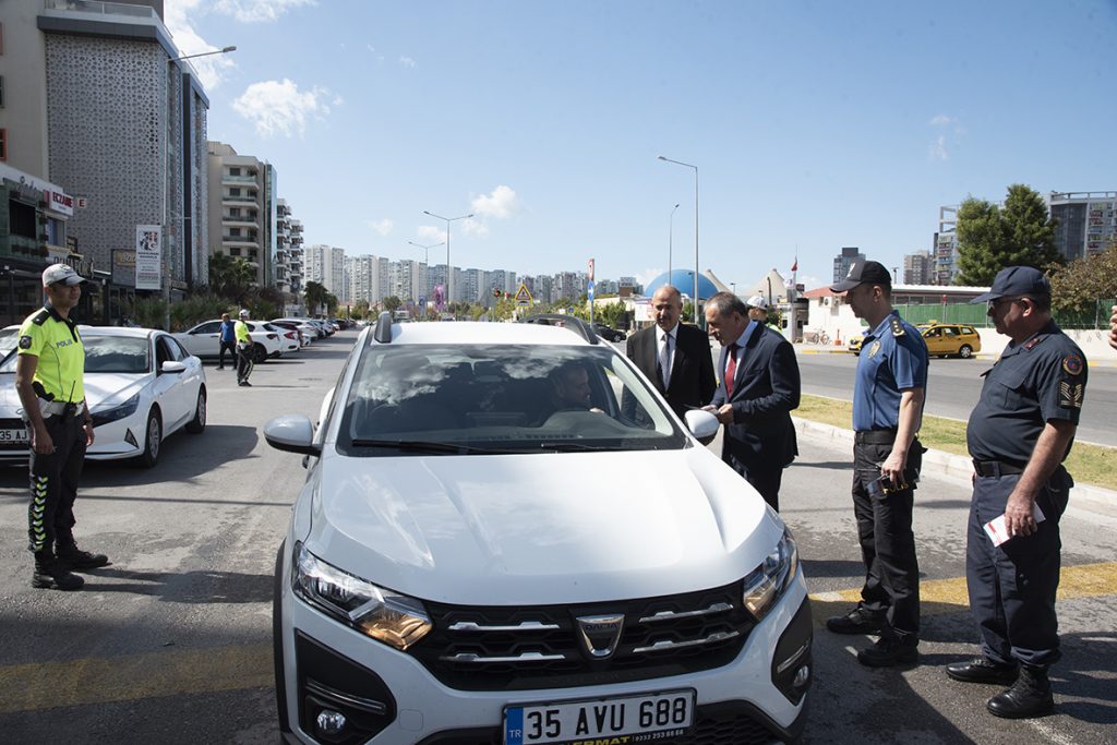 Yoldan geçen otomobiller durduruldu. Karşıyaka Kaymakamı Özkan Demir ve beraberindekiler sürücüleri proje konusunda bilgilendirdi. Yerleşim birimlerinde özellikle yaya önceliğini unutulmadan uygulanması konusunda sürücülere uyarıda bulundu.