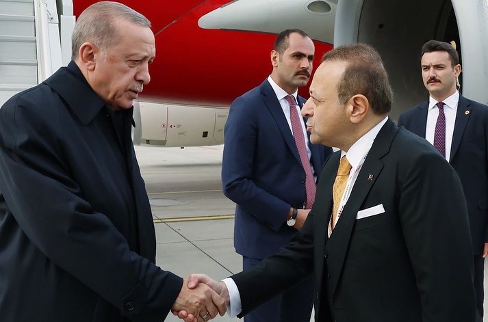 Prag Büyükelçisi Egemen Bağış, havalimanında Cumhurbaşkanı Recep Tayyip Erdoğan’ı karşılayanlar arasında yer aldı ve ikili sohbet edip selamlaştı.
