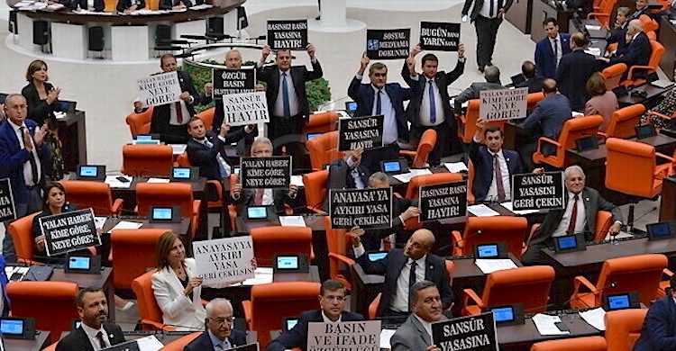 Türk Ceza Kanunu’na eklenen “Halkı yanıltıcı bilgiyi alenen yayma” başlıklı madde ile “halk arasında endişe, korku ve panik yaratma saikiyle gerçeğe aykırı bir bilgiyi kamu barışını bozacak şekilde yayan kimseye üç yıla kadar hapis cezası öngörülüyor.
