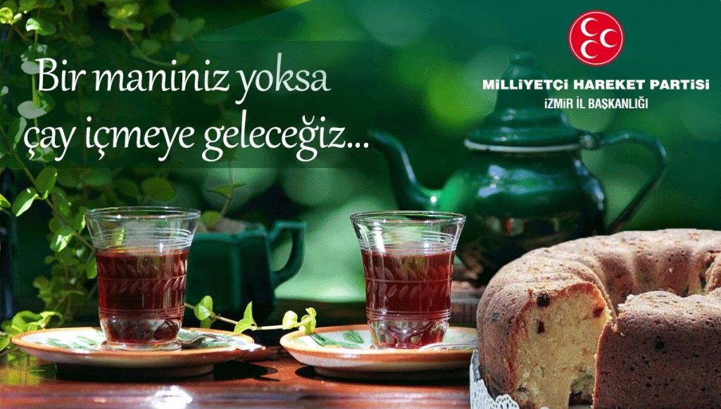 Milliyetçi Hareket Partisi (MHP) İzmir İl Başkanlığı önemli bir kampanya başlattı. 2023 Seçimlerine yönelik otuz ilçede gerçekleştirilecek olan kampanya “Bir Maniniz Yoksa Çay İçemeye Geliyoruz” adını taşıyor. Kampanya hakkında konuşan il başkanı Veysel Şahin; “Gelenekten ışık alarak hazırladığımız kampanyamızla tüm İzmir’de ev ziyaretlerimize başlıyoruz. Liderimizin veciz ifadeleriyle önce ülkem ve milletim diyen herkesle buluşmak üzere başlattığımız kampanyamızda ev hanımlarımız için hazırladığımız küçük bir hediyemiz de olacak” dedi.