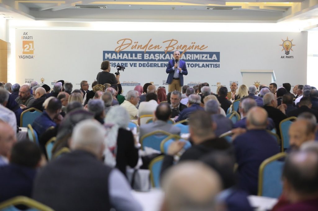 K Parti İzmir İl Başkanlığı’nın düzenlediği “Dünden Bugüne Mahalle Başkanlarımızla İstişare ve Değerlendirme” toplantısında, rekor katılımla Mahalle Başkanları ile bir araya gelindi. İzmir’in 14 ilçesinden mahallelerinde görev yapmış ve yapmakta olan Mahalle Başkanlarını ağırlayan İl Başkanı Kerem Ali Sürekli; bu gücün, 21 yıldır aralıksız süren iktidarlarının hizmet ve başarılarının lokomotif gücü olduğunu belirterek; “Sizler, partimizin temel taşısınız. AK Parti Ailesi; dünden bugüne milletle bir bütün halinde yoluna devam ediyorsa, sizlerin de sayesindedir. Heyecanımız ilk günkü gibi biliyorum. Çünkü tazelenmeyi, yenilenmeyi biliyoruz. 2023 hedefimize de bu birlik beraberlik sayesinde; mahalle başkanlarımız, üyelerimiz ve bize gönül verenlerle birlikte varacağız.” diye konuştu.