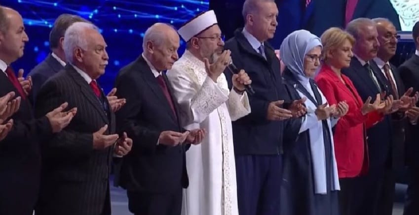 Vatan Partisi Genel Başkanı Doğu Perinçek’in törende yapılan duaya katılması Gazeteci Nevşin Mengü’yü rahatsız etti.