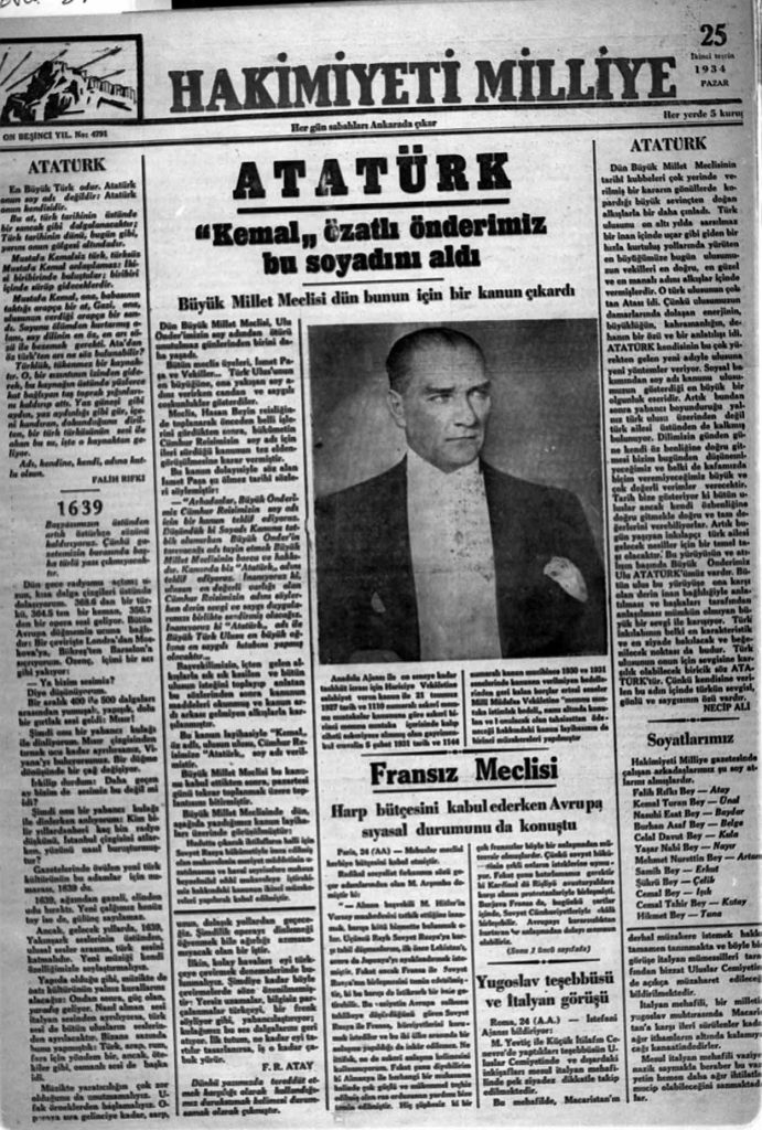 Türkiye Cumhuriyeti’ni yoktan var eden Büyük Önder Gazi Mustafa Kemal’e, kanunun kabulünden 4 ay sonra, yürürlüğe girmesinden ise yaklaşık 2 ay önce, 24 Kasım 1934’te kabul edilen kanunla “Atatürk” soyadı veriliyordu.
