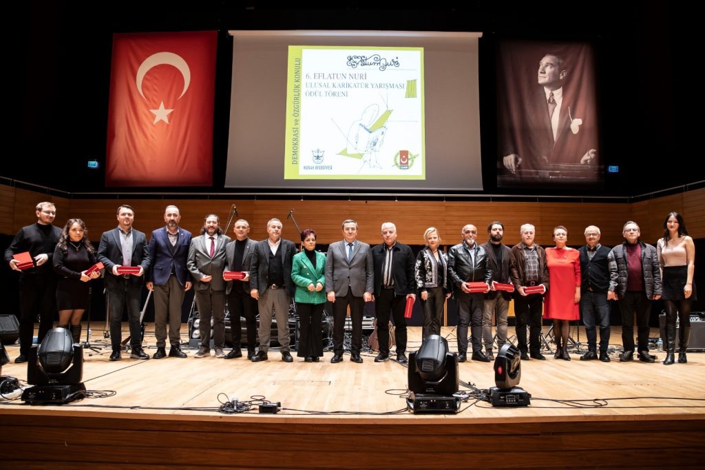 Dilek Gappi emeği geçenlere de teşekkür ederek, “Bu zorlu mücadele içerisinde kenetlendiğimiz ve en önemli, prestijli etkinliklerimizden olan Eflatun Nuri Karikatür Yarışması’nda bizlere yol arkadaşlığı yapan Konak Belediyemizin vizyoner Başkanı Abdül Batur’a, yarışmanın isim babası Sadık Pala’ya, yönetim kurulu arkadaşlarıma ve jüriye teşekkür ediyorum” dedi.
