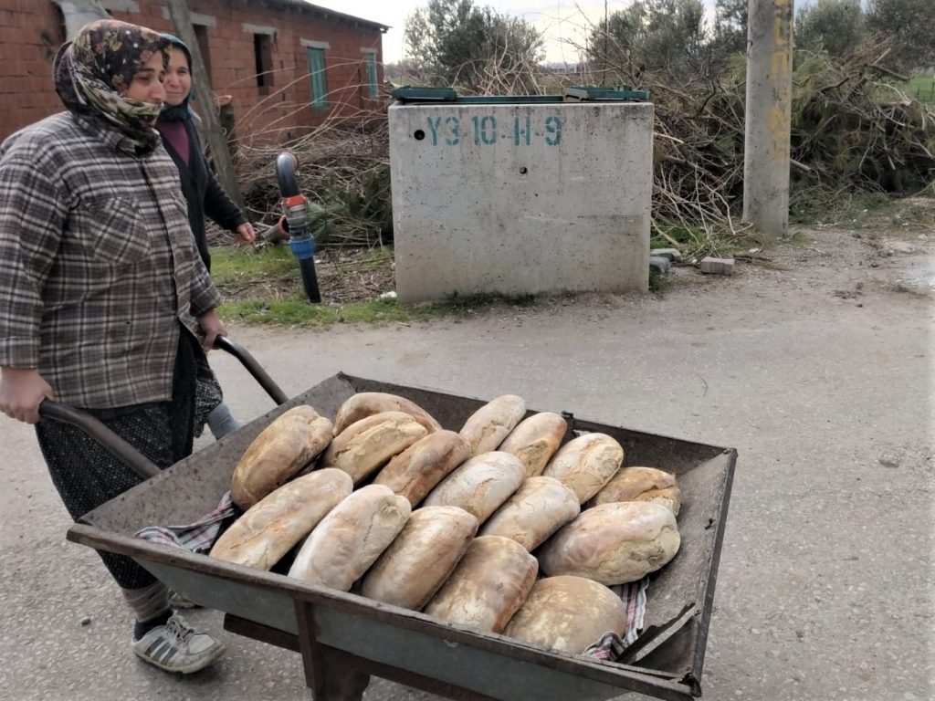 Eli öpülesi analar depremzedeler için Bergama’da ekmek pişiriyor