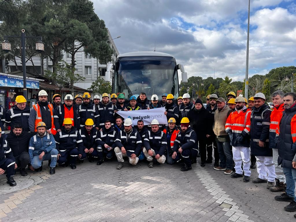 Depremin yaşandığı sabahın ilk saatlerinde koordine olan Kınık Kaymakamlığı, Kınık Belediyesi ve Polyak Eynez Maden, Kahramanmaraş’ın Pazarcık ve Elbistan ilçelerinde meydana gelen 7.7 ile 7.6 büyüklüğündeki depremlerin hemen ardından deprem bölgesine, kurtarma çalışmalarına katılmak için dört günde 4 kurtarma timi, 220 personel ve 10 araç gönderdi.
