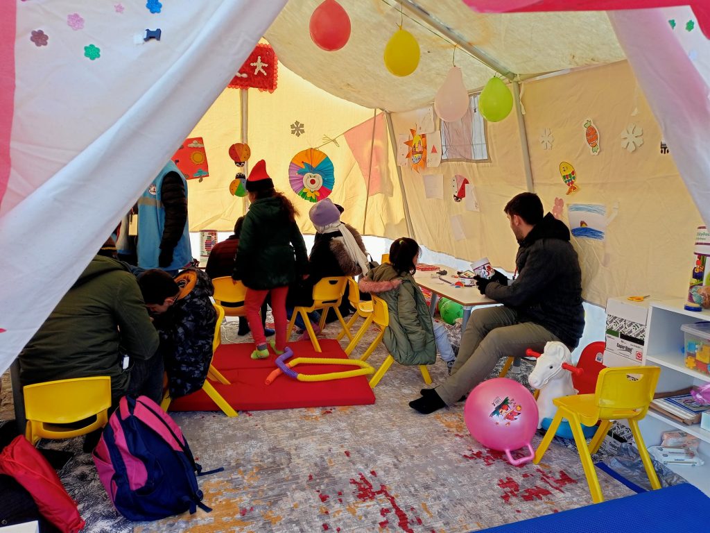 kurulan çadırlarda yaşayan depremzedelere yönelik çalışmalar gerçekleştirdi. Ertesi gün