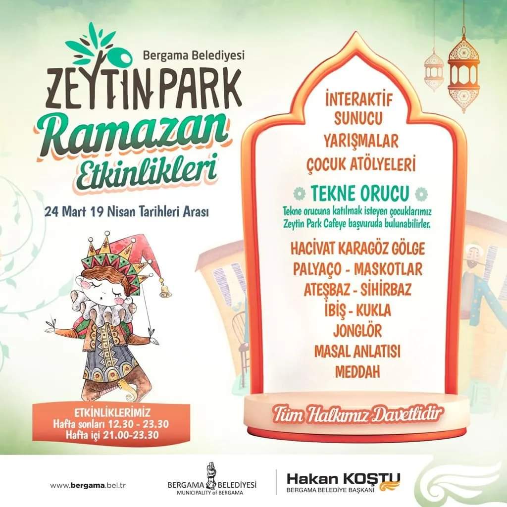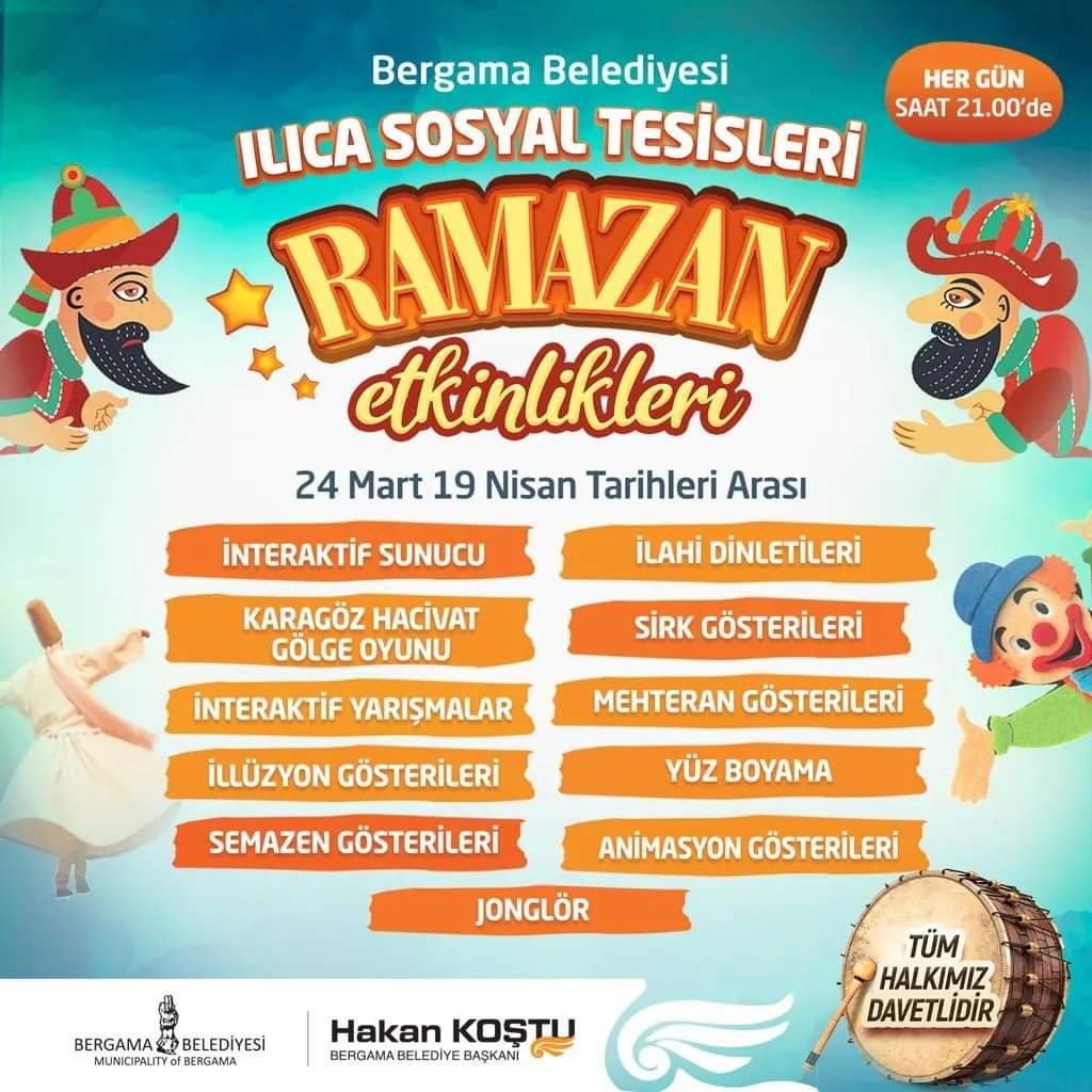 Ramazan etkinliklerinin geleneksel değerlerin tanınması açısından son derece önemli olduğuna dikkat çeken Bergama Belediye Başkanı Hakan Koştu, “Ramazan Ayı kardeşliğin, bereketin, dostluğun ve huzurun ayıdır. Ramazan akşamlarımızın güzel geçmesi için düzenlediğimiz etkinliklerimizde 7’den 77’ye herkes hoşça vakit geçirirken bir yandan da geleneksel değerlerimizi hatırlayıp öğrenmiş oluyorlar. Tüm hemşerilerimin Ramazan Ayı’nı tekrardan kutluyor, ücretsiz olan etkinliklerimize davet ediyorum” dedi.
