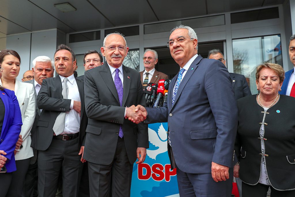 Cumhuriyet Halk Partisi Genel Başkanı ve Millet İttifakı Cumhurbaşkanı Adayı Kemal Kılıçdaroğlu, Demokratik Sol Parti Genel Başkanı Önder Aksakal ile Demokratik Sol Parti Genel Merkezi’nde görüştü. CHP lideri ve Cumhurbaşkanı Adayı Kılıçdaroğlu, görüşmenin ardından DSP lideri Aksakal ile ortak basın açıklaması yaptı.
