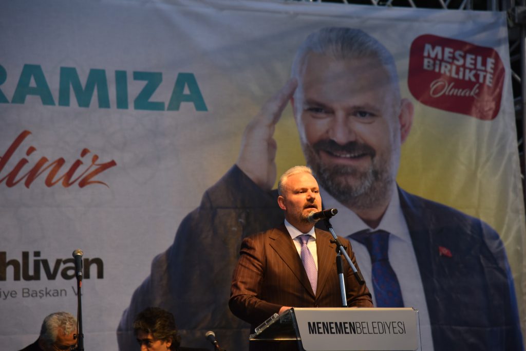 Bununla birlikte Emiralem’deki tüm yollarımızı yeniliyoruz. Tabi gençlerimizi de unutmuyoruz. Menemen genelinde inşa ettiğimiz 20 halı sahadan birini güzel Emiralemimizde yaptık. Emiralem düğün salonumuz da yeniliyor. Yine aynı binada geleceğimizin teminatı çocuklarımızın güzel vakit geçirmeleri için bir gençlik merkezi dizayn ettik. Biz, derdinizle dertlenmeye, gece gündüz demeden çalışmaya devam edeceğiz. Bunu böyle bilmenizi gönülden istiyorum. Rabbimden tuttuğumuz oruçların, yaptığımız duaların kabul olmasını temenni ediyorum. Hepinizi saygı sevgi ve muhabbetle selamlıyorum” diye konuştu.