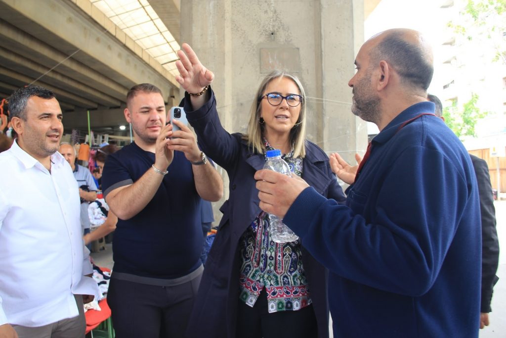 Cumhurbaşkanlığı seçimlerinin ikinci tura kalmasının ardından saha temaslarını sürdüren AK Parti İzmir Milletvekili Ceyda Bölünmez Çankırı, Yeni Bornova Özkanlar Perşembe Pazarı’nda alışveriş yapan vatandaşlarla sohbet ederek pazarcı esnafına kolaylıklar diledi.