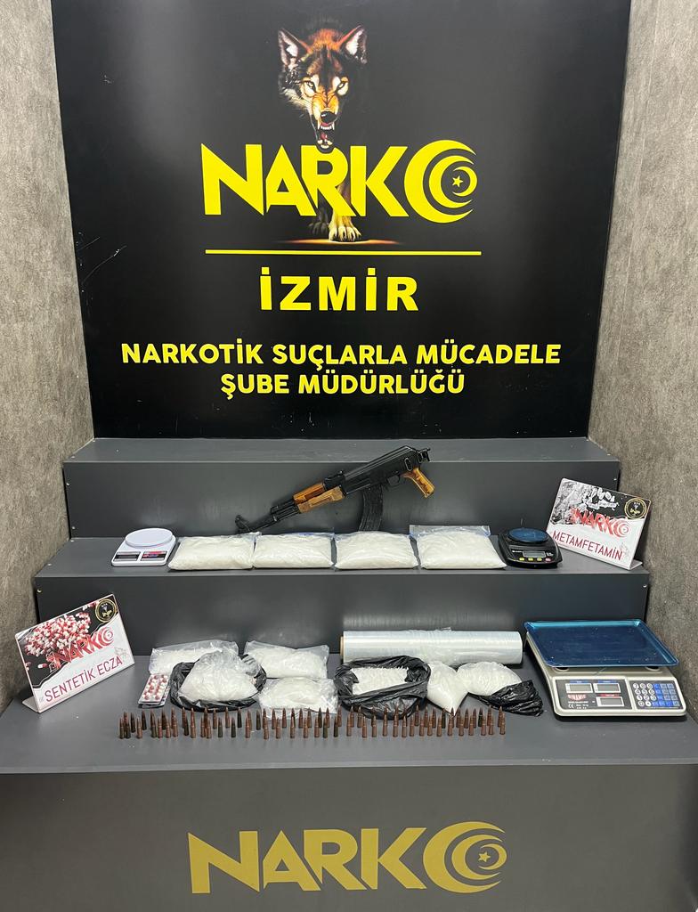 İzmir’de uyuşturucu veya uyarıcı madde ticareti yapan şüphelilere yönelik Narkotik Suçlarla Mücadele Şube Müdürlüğü ekipleri yapılan çalışmalarda İzmir- Karşıyaka ilçesinde bulunan 1 işyerine gerçekleştirilen operasyonda;