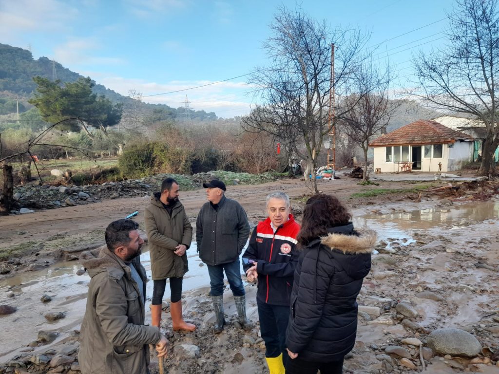 Bergama İlçesinde 16.01.2024 tarihinde sabah saatlerinde etkili olan şiddetli yağış sele neden oldu. İzmir İl Tarım ve Orman Müdürü Mustafa ŞAHİN, selin zarar verdiği Kaleardı ve İncecikler Mahallesinde İlçe Tarım ve Orman Müdürlüğü teknik personeli ile birlikte selden etkilenen üreticilerin zarar tespit çalışmasına eşlik etti. İl Müdürü Mustafa ŞAHİN ‘Ani bastıran şiddetli sağanak yağış dolayısıyla insan can kaybının yaşanmamış olması bizim en büyük tesellimiz… Maalesef bazı çiftçilerimizin hayvanları telef olmuştur. Kaleardı Caber Mahallesinde bir hayvancılık işletmesinde 398 adet küçükbaş hayvan ve yaklaşık 15 ton civarında yem kaybımız sözkonusu… Ayrıca İncecikler Mahallesinde de bir üreticimizin 10 adet büyükbaş hayvanı ve 48 adet de küçükbaş hayvanının sel suyuna kapılması sonucu telef olduğunu tespit ettik.