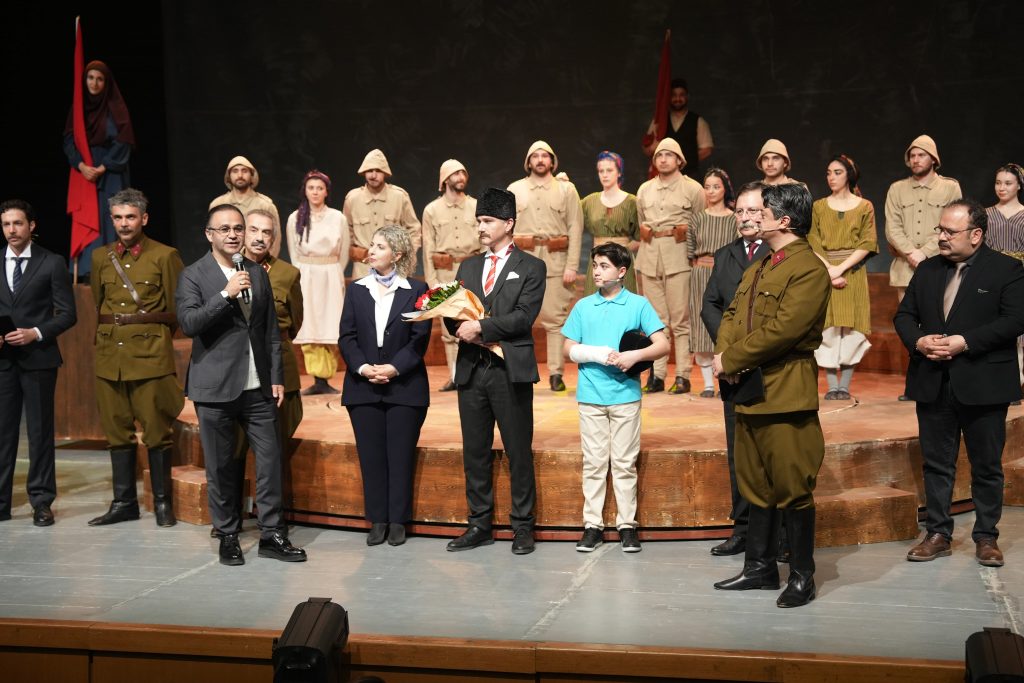 Milli mücadele kahramanları ve birlik ruhunun sahnelendiği tiyatro oyununda izleyenler duygu dolu anlar yaşadı. Oyunda Hamdullah Suphi Bey’in Türkiye Büyük Millet Meclisinde İstiklal Marşı’nın kabulünü canlandırdığı sahneyi, tüm salon ayakta alkışladı.