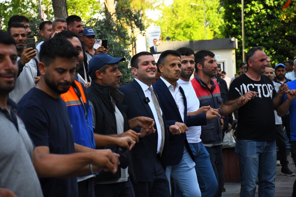 BAŞKAN DEMİR’DEN GÜNDOĞDU’YA DAVET Açıklamalarını sürdüren Demir, “Yola çıkarken söylediğimiz ‘Çok emek güçlü gelecek’ şiarı ile Torbalımız için yine çok emek vermeye devam edecek, güçlü bir geleceği el ele inşa edeceğiz.  Bu duygu düşüncelerle 1 Mayıs Emek ve Dayanışma Gününüzü işçinin, emekçinin bayramını şimdiden kutluyor; hepinize sevgilerimi sunuyorum” dedi. Konuşmasının ardından işçilerle birlikte halay çeken Başkan Demir, yarın Gündoğdu Meydanı’nda olacağını hatırlatarak herkesi Gündoğdu’ya davet
