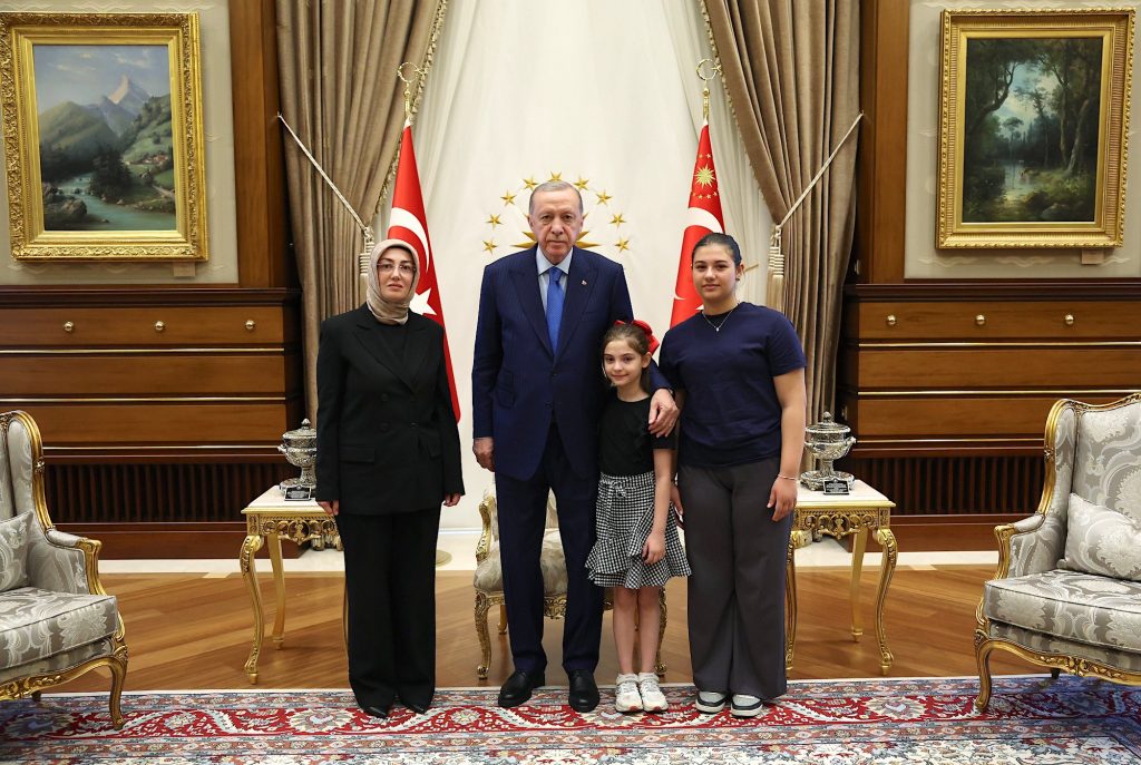 Erdoğan’ın sosyal medya hesabından yapılan paylaşımda, “Cumhurbaşkanımız @RTErdogan, Eski Ülkü Ocakları Genel Başkanı merhum Sinan Ateş’in eşi Ayşe Ateş ile kızları Bengisu ve Banuçiçek Ateş’i kabul etti” denildi.