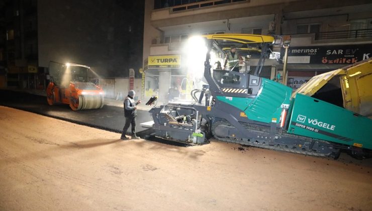 Menderes Belediyesi, İzmir Büyükşehir Belediyesi’nin de destekleri ile asfaltlama çalışması yürütüyor. Ekipler, en kısa sürede yolları yeni haline kavuşturmak için gece mesaisi yapıyor.