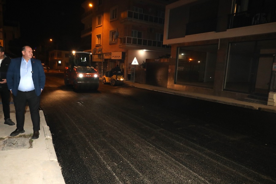 Menderes Belediyesi, İzmir Büyükşehir Belediyesi’nin de destekleri ile asfaltlama çalışması yürütüyor. Ekipler, en kısa sürede yolları yeni haline kavuşturmak için gece mesaisi yapıyor.