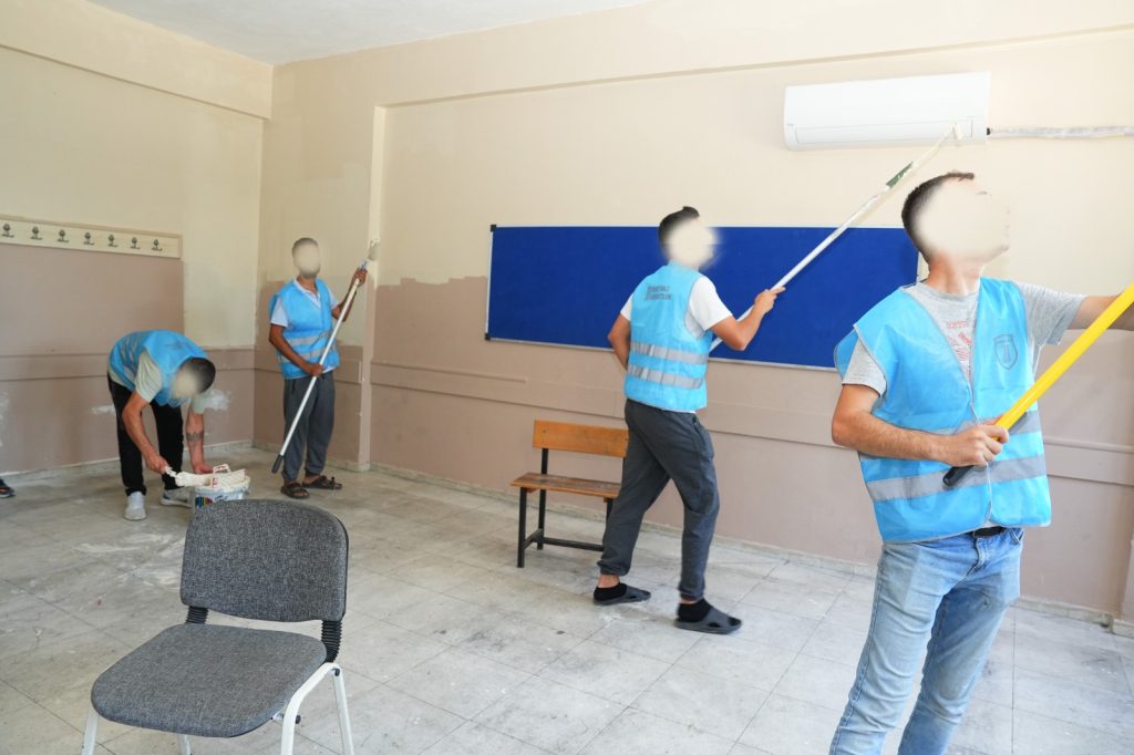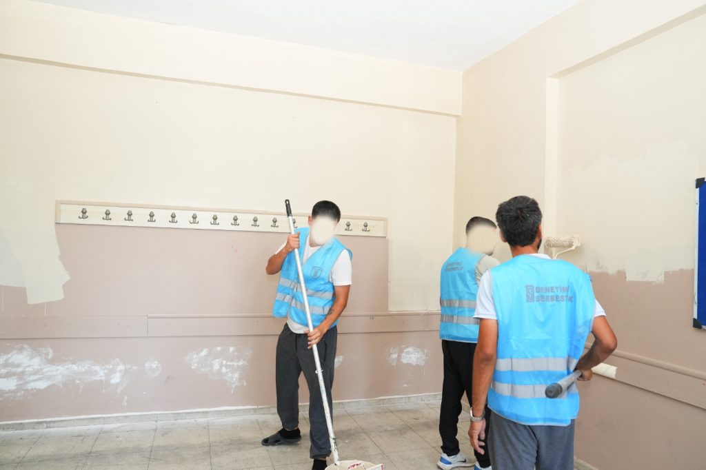 İzmir Denetimli Serbestlik Müdürlüğü tarafından, 2025 yılı içerisinde kamu yararına çalışma yükümlülüğü kapsamında İzmir genelindeki birçok eğitim kurumunda okul boyama ve tadilat faaliyetleri gerçekleştiriliyor.