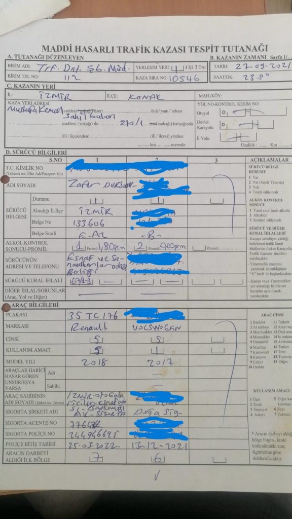 Oda Başkanı Zafer Dursun’un keyfi bir yönetim anlayışı sergilediğini söyleyen Hiçüşenmez, resmi belgelere dikkat çekti. Hiçüşenmez, “Makamın gücünü kullanarak üyenin hakkına girilemez. Maddi Hasarlı Trafik Kazası Tespit Tutanağı’na göre; Zafer Dursun, 35 TC 176 siyah plakalı hizmet aracını 1.80 promil alkollü şekilde kullanarak kaza yapmıştır. Üyelerin parasıyla alınan resmi araçta ciddi maddi hasar meydana gelmiştir. Tutanak saat 23.00’te tutulmuştur. Bu da kazanın mesai saatleri dışında gerçekleştiğini açıkça göstermektedir. Resmi araç tamamen özel ve keyfi amaçlarla kullanılmıştır” ifadelerini kullandı.