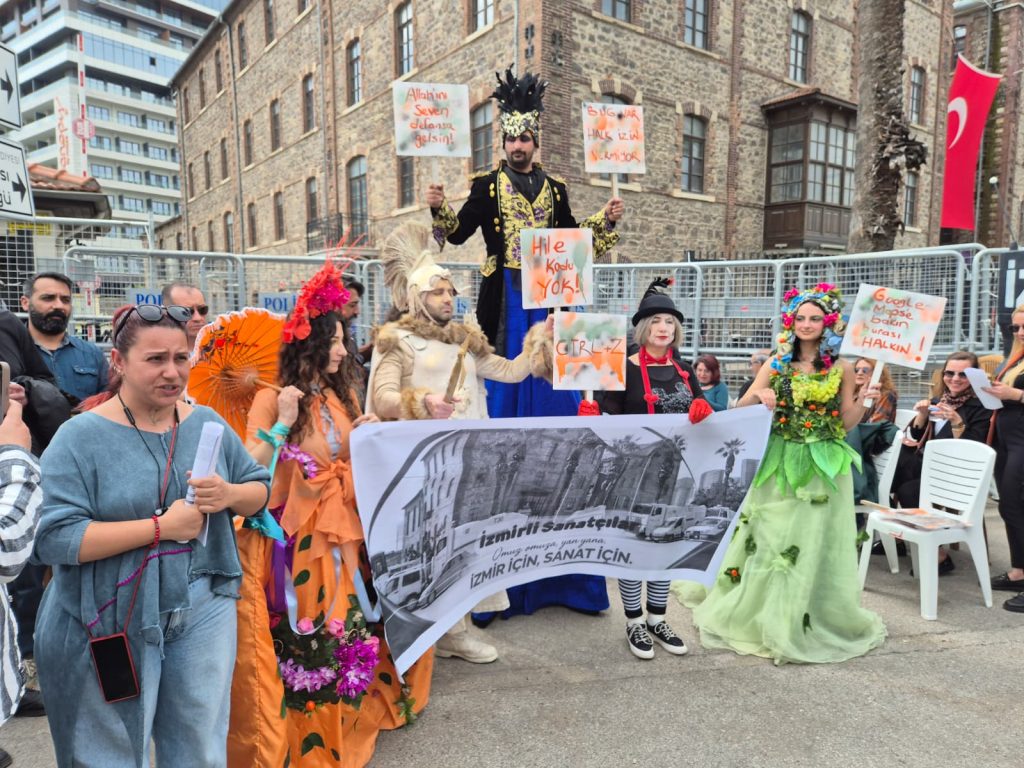 İzmirli sanatçılar adına açıklama yapan Oyun Hamuru Tiyatrosu’ndan Burak Özbaykuş, ise “Yetkililere çağrımız; hukukun üstünlüğünü ve adaleti sağlamaları, özellikle İzmir halkı üzerinde yaratılan bu mağduriyetin ivedilikle giderilip Meslek Fabrikası’nın yeniden İzmir halkının hizmetine açılmasıdır. Biz İzmirli sanatçılar olarak mahkemenin adil bir şekilde sonuçlanacağı güne kadar İzmir halkının yanında yer alacağımızı kamuoyuna bildiririz” diye konuştu.