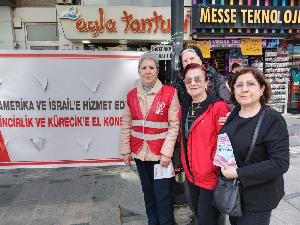 Vatan Partisi Karşıyaka İlçe Başkanlığı, Nilay Özçetin öncülüğünde dikkat çeken bir çalışmaya imza attı. İlçe örgütü, İran’ın ABD ve İsrail’e karşı kazandığı zaferi selamlamak ve İncirlik Üssü ile Kürecik Radar Üssü’nün Türk Silahlı Kuvvetleri’nin tam kontrolüne alınması talebiyle imza masası kurdu.