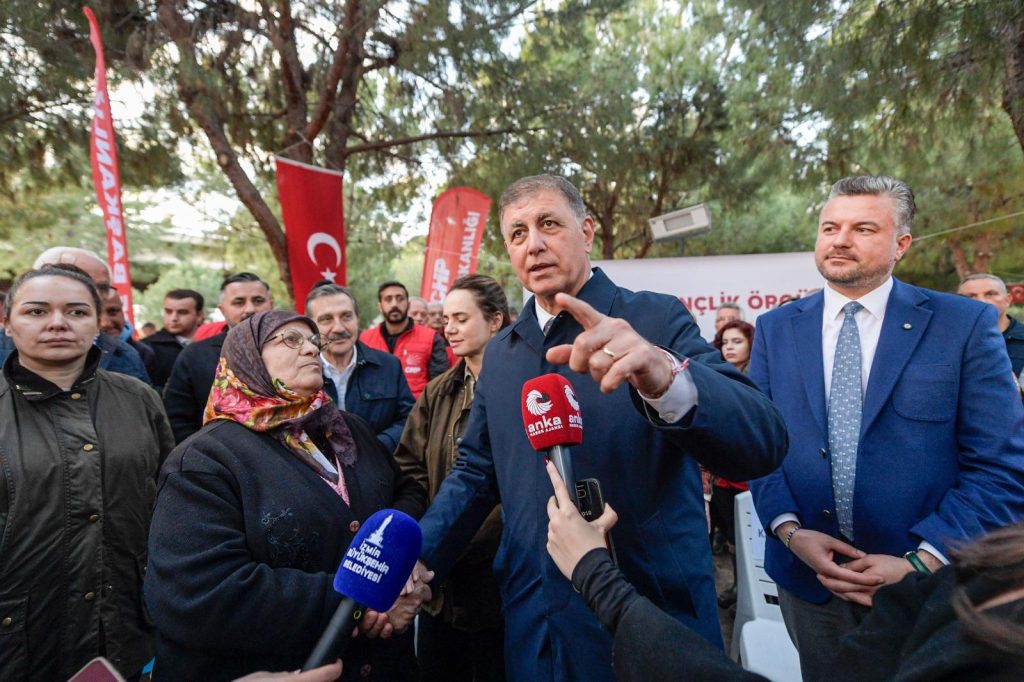 Elveda Teyze’ye sarılarak desteğine teşekkür eden Başkan Tugay, “Teyzemi buraya getiren güç, ona bu itirazı yaptıran şey nedir diye düşünsünler. Yürüyerek nereden buraya gelmiş, işini bırakmış. İnsanları yaraladılar. Sokakta o kadar çok insan bu konuyla ilgili rahatsızlıklarını, üzüldüklerini dile getirdiler ki… ‘Vazgeçmeyin, direnin, yanınızdayız’ diyorlar. Sokakta insanları çağıracağım, kimin itirazı varsa gelsin burada hep beraber buna sebep olanları kınasınlar. İlla buraya gelmeleri de gerekmiyor. Toplandıkları yerden bunları protesto etsinler” ifadelerini kullandı.